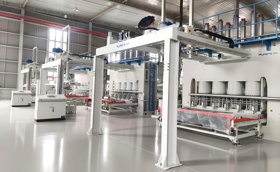 Over a dozen PURETE short-cycle pressing lines have been introduced across multiple bases in Jiangxi, Hunan, Shandong, and other regions. The pressing process employs servo-driven precision positioning and utilizes 3,200-ton heavy-duty presses to achieve deep embossing and high quality. This setup ensures dual guarantees of production capacity and efficiency, reducing labor costs by 40% compared to original equipment. Products are exported to Europe, Southeast Asia, and other regions.